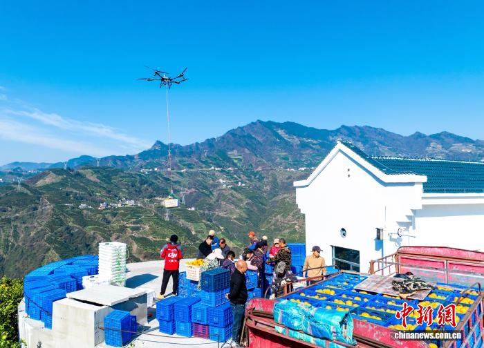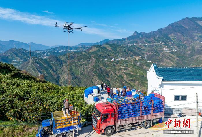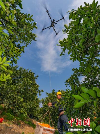 三峡库区无人机“飞”运脐橙