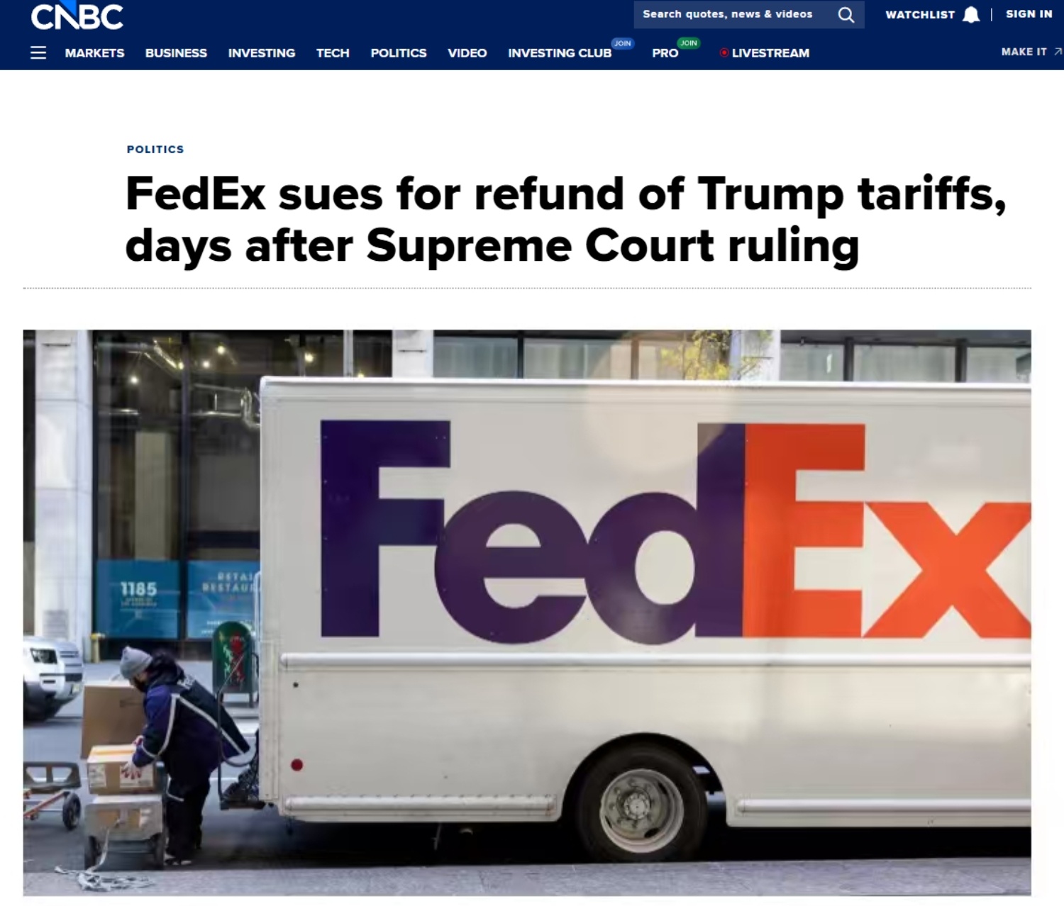今日寰球运送企业联国速递(FedEx)告状好邦当局恳求退借闭税金钱。联国速递已背好邦邦际交易法院提告状讼,苦求齐额退借凭据《邦际紧迫经济权利法》征支的一切闭税。