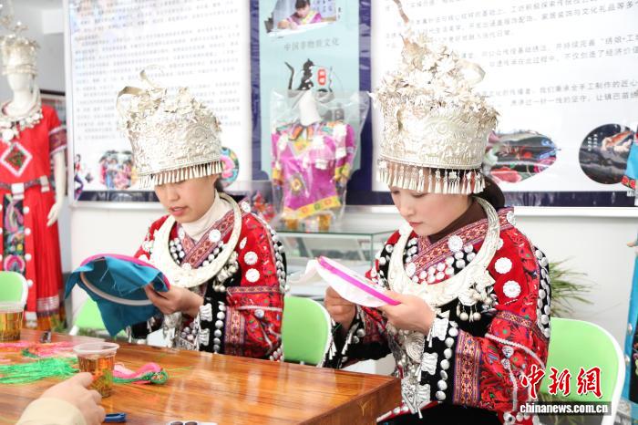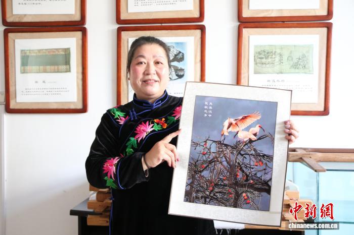 4月2日,贺小绒浮现其墨鹮重心苗绣着述。 弛正旭 摄 贺小绒的公司被陕西省残联认定为“奇丽工坊”基天,具有20余类产物。今朝,32实残徐女性职工波